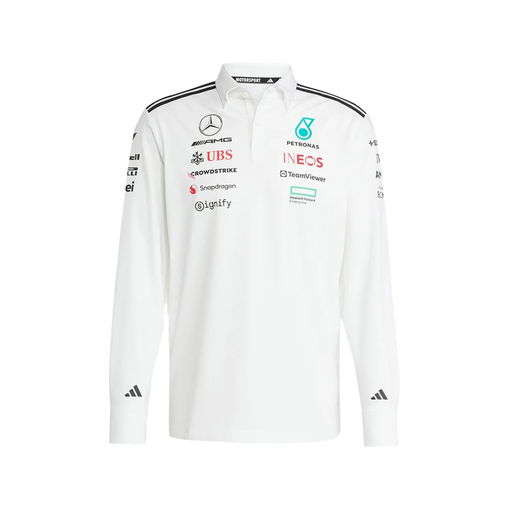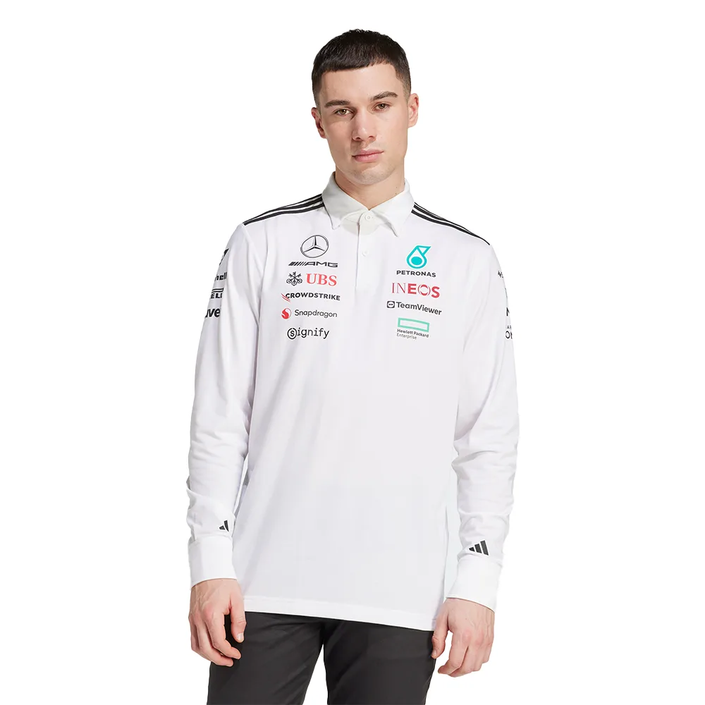 Mercedes f1 team polo shirt l/s, 2025, white, Mens